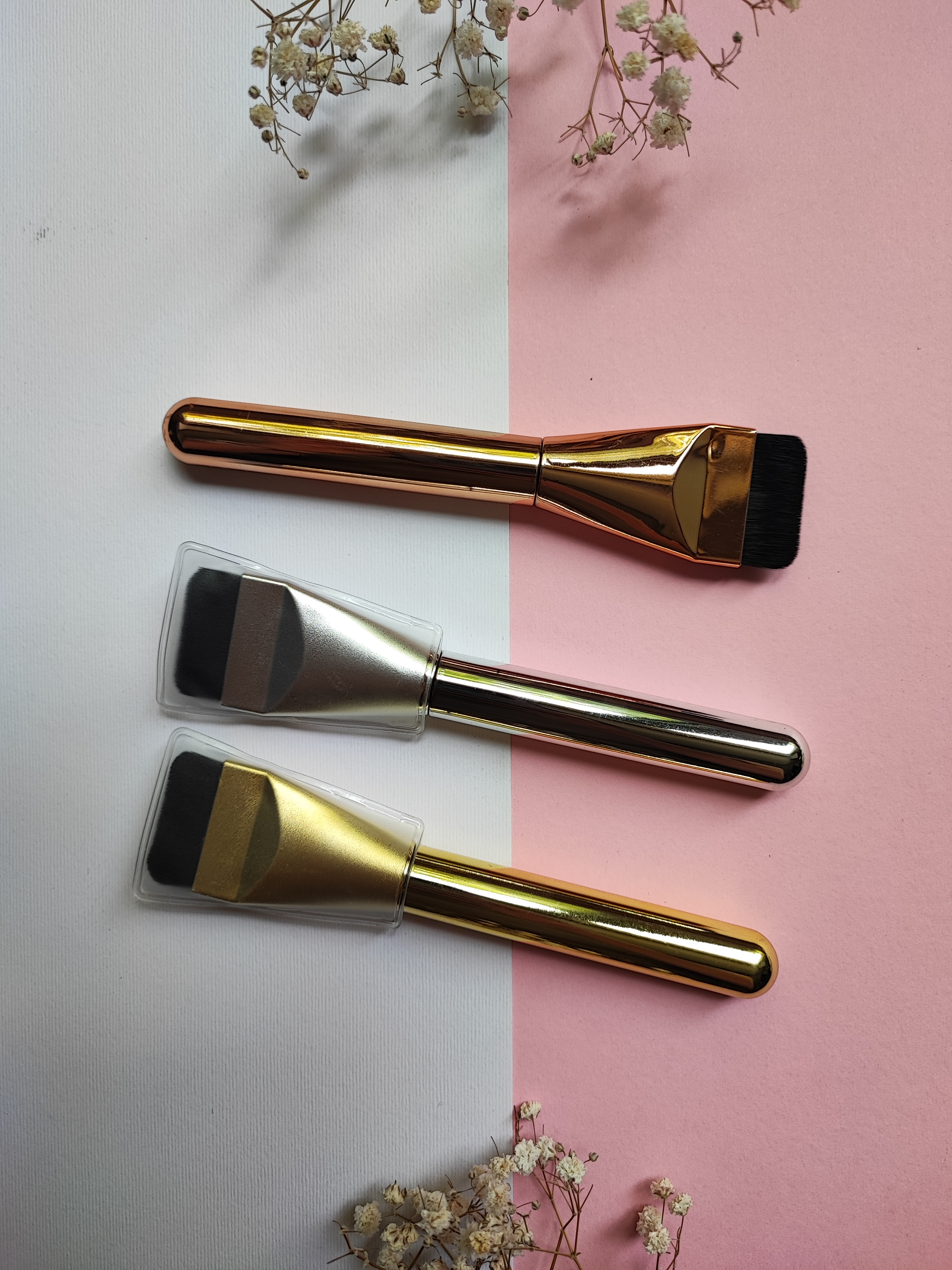 براش کرم پودر سر تخت|براش تخت کرم پودر سیلور طلایی و گلد|باریک ترین براش برای کرم پودر پخش یکدست و یکنواخت کرم پودر روی صورت تراکم بالای براش