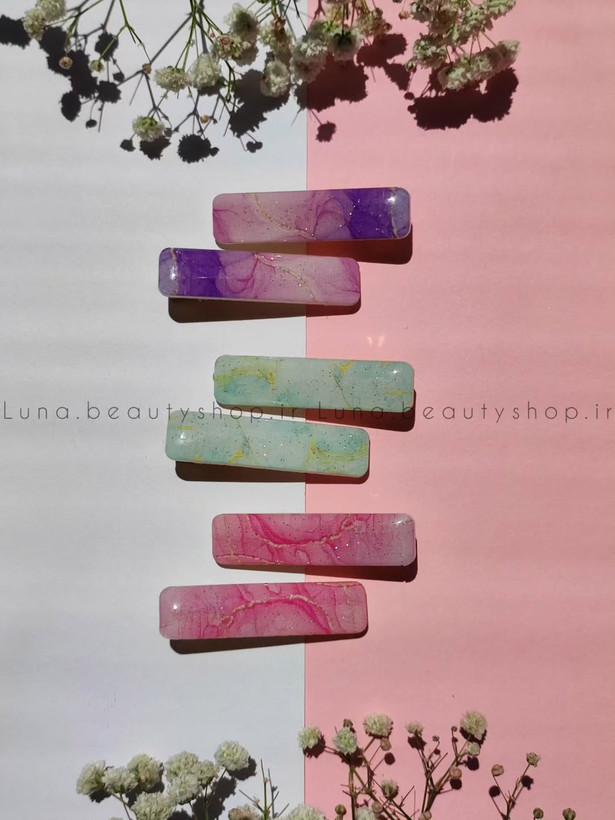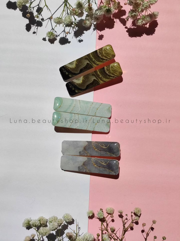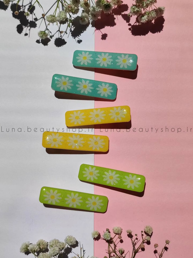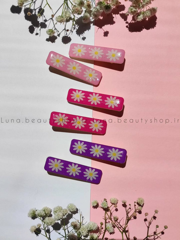 گیر سر انبری دوتایی با طرح دلبر بابونه و طرح ماربل