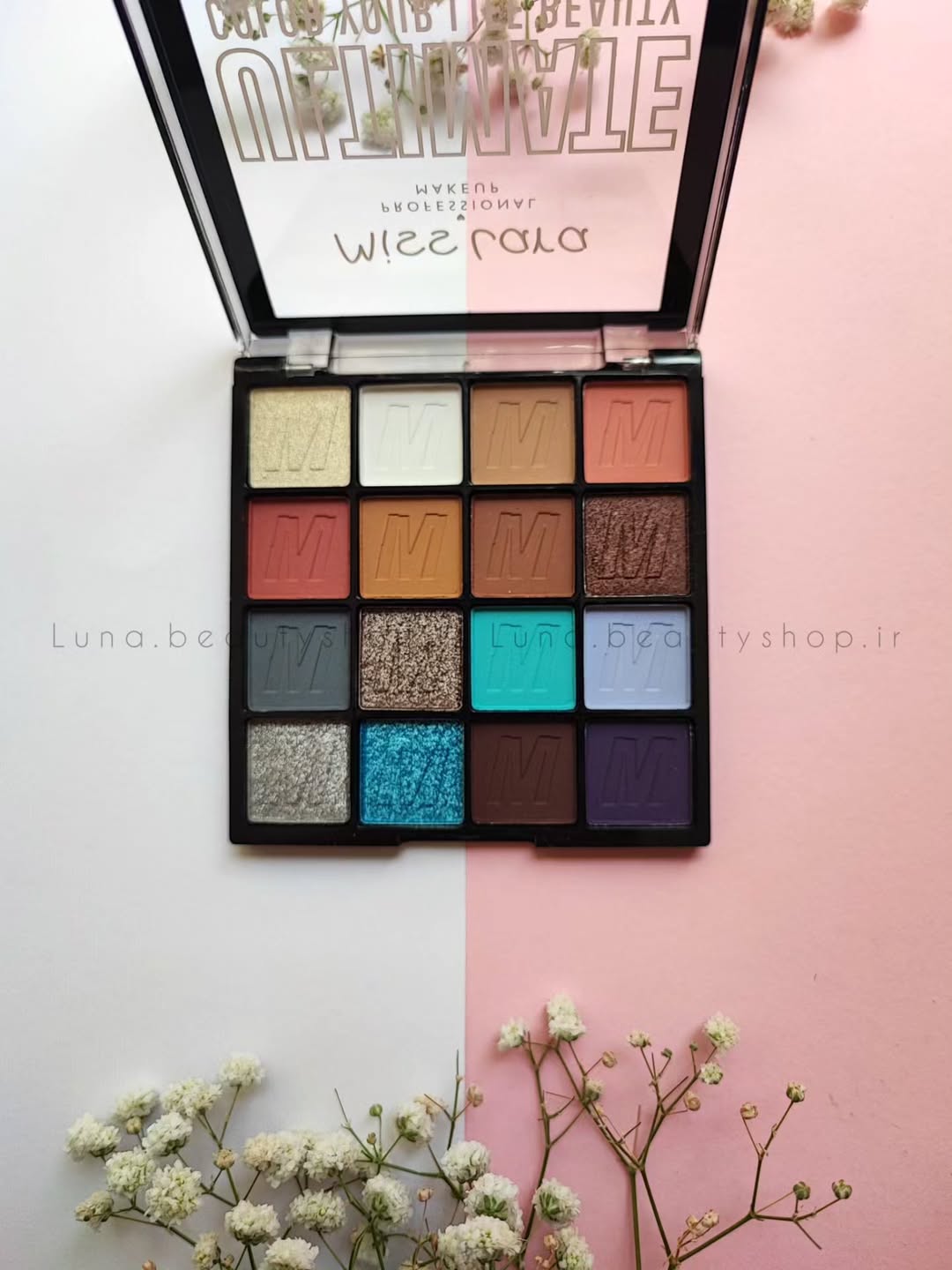 ۱۶ رنگ متنوع و جذاب شامل مات و شاین رنگدانههای قوی با پیگمنت بالا و پوششدهی کامل بافت نرم و مخملی برای پخش و ترکیب آسان ماندگاری بالا و بدون ریزش سایه طراحی زیبا و قابل حمل مناسب برای انواع آرایش روزانه و مجلسی