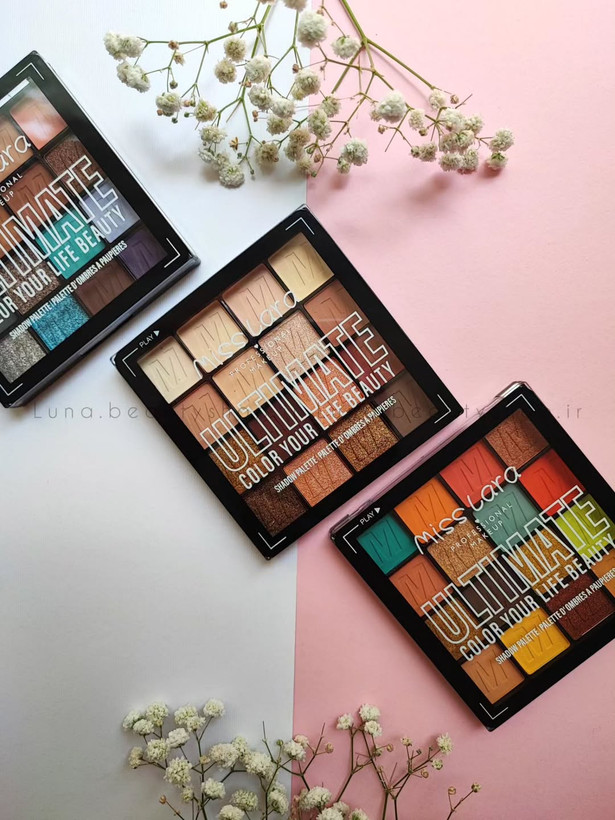 پالت سایه 16 رنگ میس لارا مدل Ultimate|شامل رنگھای مات و شاین| پیگمنت یا رنگدھی بسیار بالا| ماندگاری طولانی مدت